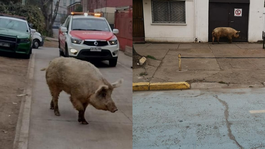 A través de redes sociales se informó del encuentro de un cerdo caminando por las calles de la comuna de Estación Central, en la Región Metropolitana