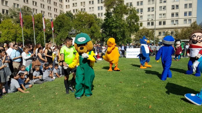 En el marco de su 90° aniversario, la Contraloría General de la República organizó este martes un particular partido de baby fútbol protagonizado por los "corpóreos": los "monos" o mascotas representativos de los distintos organismos públicos. Los equipos fueron "Anticorrupción" y "Defensa y Probidad".