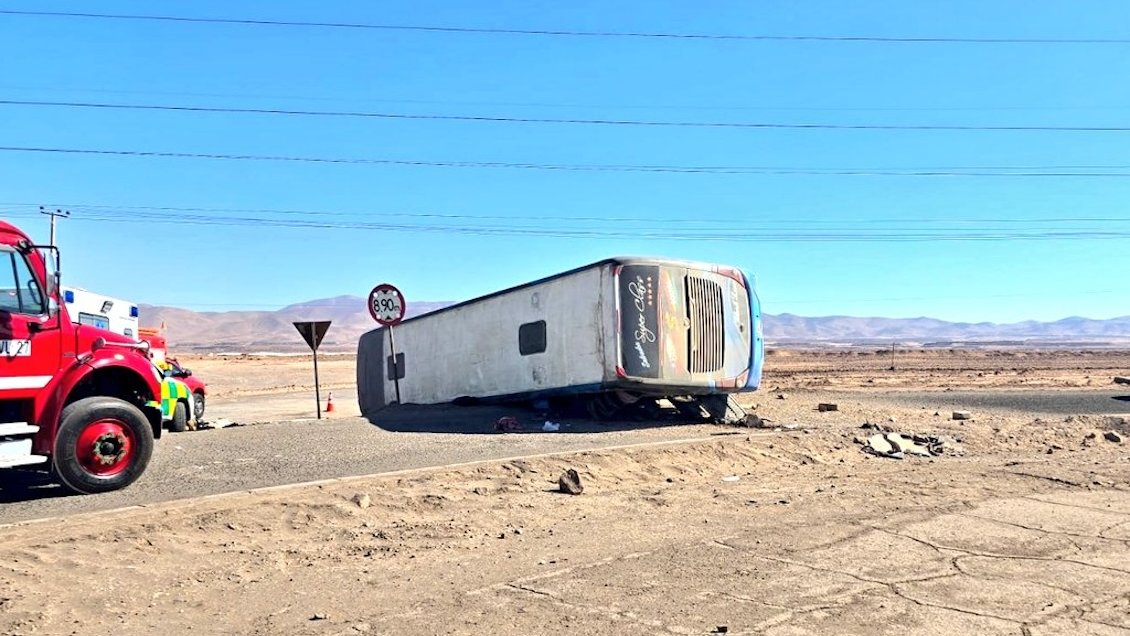 Volcamiento de un bus dejó dos fallecidos y 22 heridos en Pozo Almonte