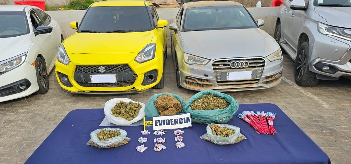 Los allanamientos se desarrollaron en Quilimarí, Pichidangui, Huentelauquén, Los Vilos, La Ligua, La Calera y San Felipe, y el detalle de la incautación indica dos kilos de marihuana, cocaína base, hongos alucinógenos, ocho automóviles (cinco de ellos de alta gama), un camión, dinero en efectivo y fuegos artificiales.