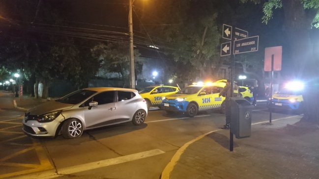 El personal municipal se percató "que un vehículo color gris se desplazaba en contra del tránsito por calle La Araucana y procede a su control. Al ver la presencia del personal de Seguridad, se dan a la fuga retrocediendo por la misma calle y colisionan un poste en calle Los Araucanos con Padre Letelier", detalló el capitán Manuel Badilla, oficial de ronda de la Prefectura Santiago Oriente.