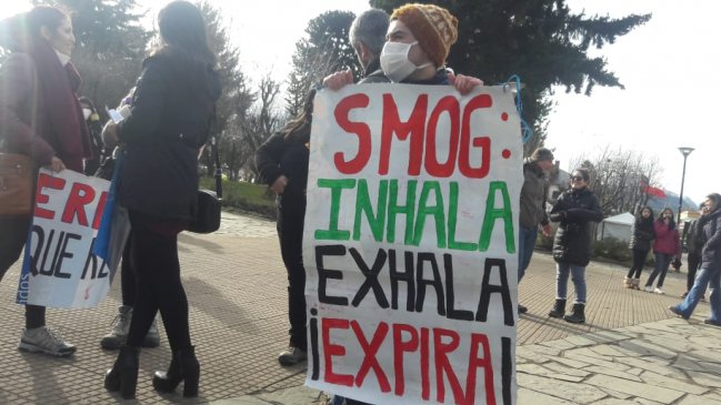 Decenas de personas marcharon en Coyhaique con mascarillas en sus rostros y lemas como "eres lo que respiras", en alusión a la contaminación atmosférica en la capital regional de Aysén producto de la combustión domiciliaria de leña.