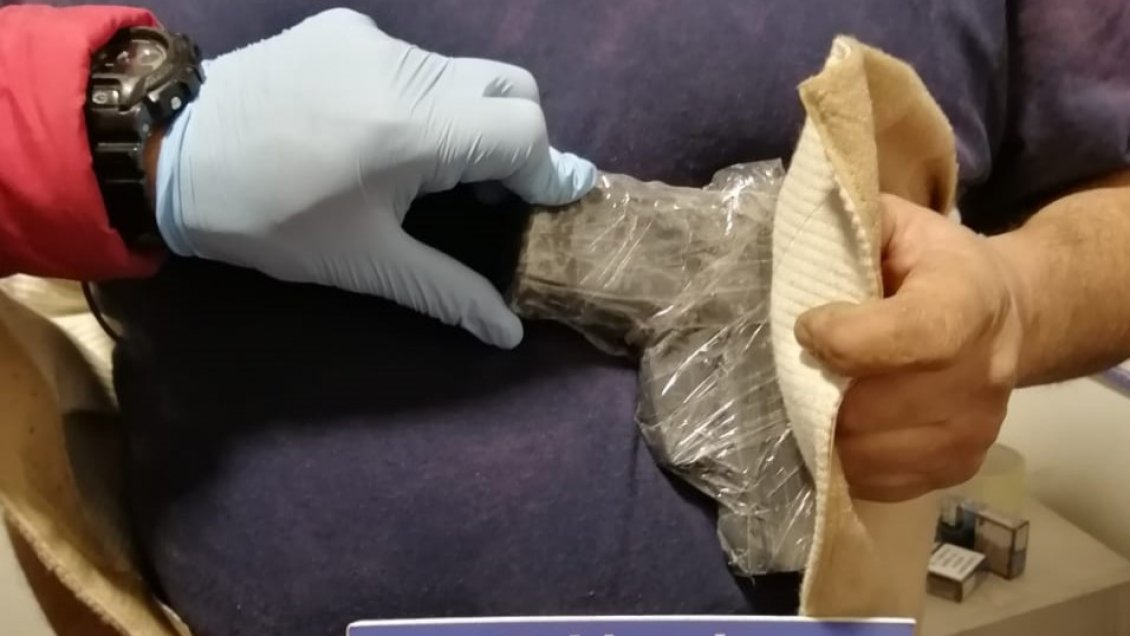 La vestimenta del hombre llamó la atención de los fiscalizadores de la Aduana.