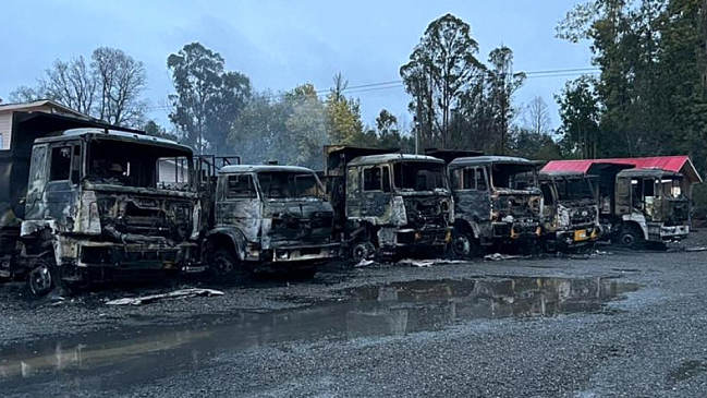 Según información preliminar, al menos 12 sujetos encapuchados ingresaron al recinto, intimidaron a los cuatro guardias de seguridad presentes y procedieron a incendiar vehículos, entre camiones y maquinaria pesada, que resultaron completamente destruidos.