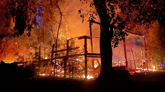 Cinco cabañas fueron destruidas esta madrugada en Contulmo.
