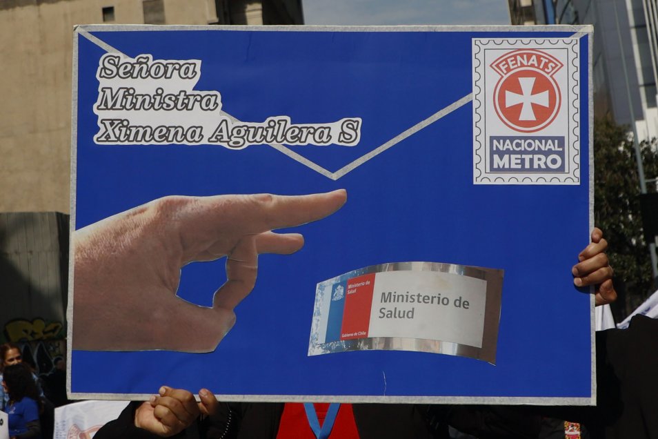 Acusando que "le quedó grande el poncho de la salud pública", dirigentes de la Fenats Nacional, que agrupa a diversas federaciones de trabajadores del sector, llegaron hasta el frontis del Ministerio de Salud, para entregar simbólicamente el "sobre azul" a Ximena Aguilera, titular de la cartera.