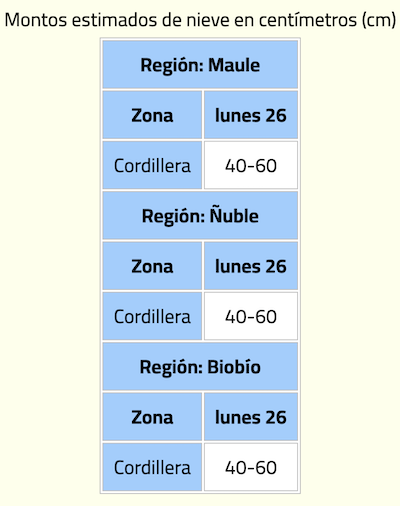 También se pronostican nevadas en sectores cordilleranos de tres regiones.