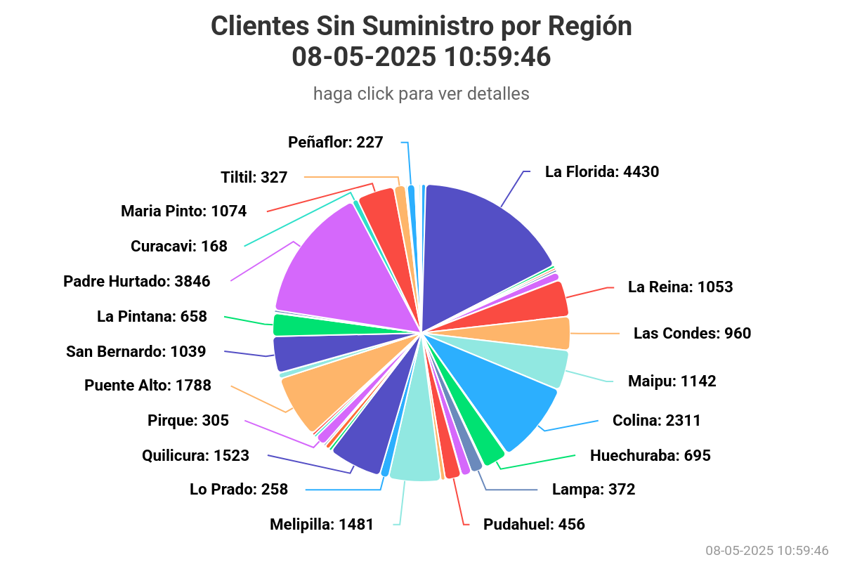 Las comunas de Padre Hurtado (3.846), La Florida (4.430), Colina (2.311) y Puente Alto (1.788), son las más afectadas.
