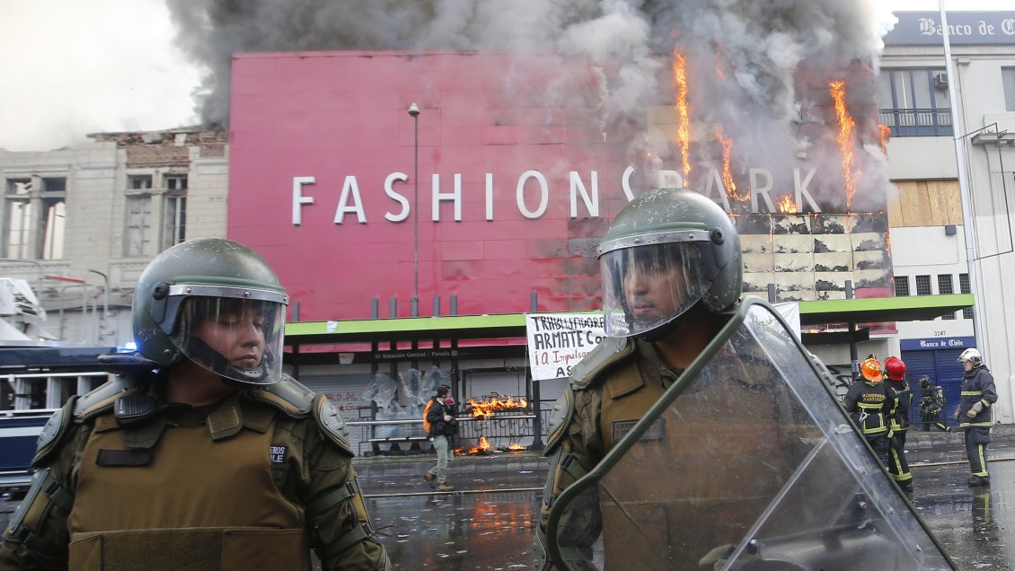 Agresiones a @Carabdechile, intentar incendiar un local que genera empleos, dañar paraderos y mobiliario público que pertenece a todos; eso fue lo único que algunos fueron a hacer a marcha @CentralClasista. Acá no fueron nunca las demandas lo importante, sino causar daño! pic.twitter.com/1a4awT6fEs