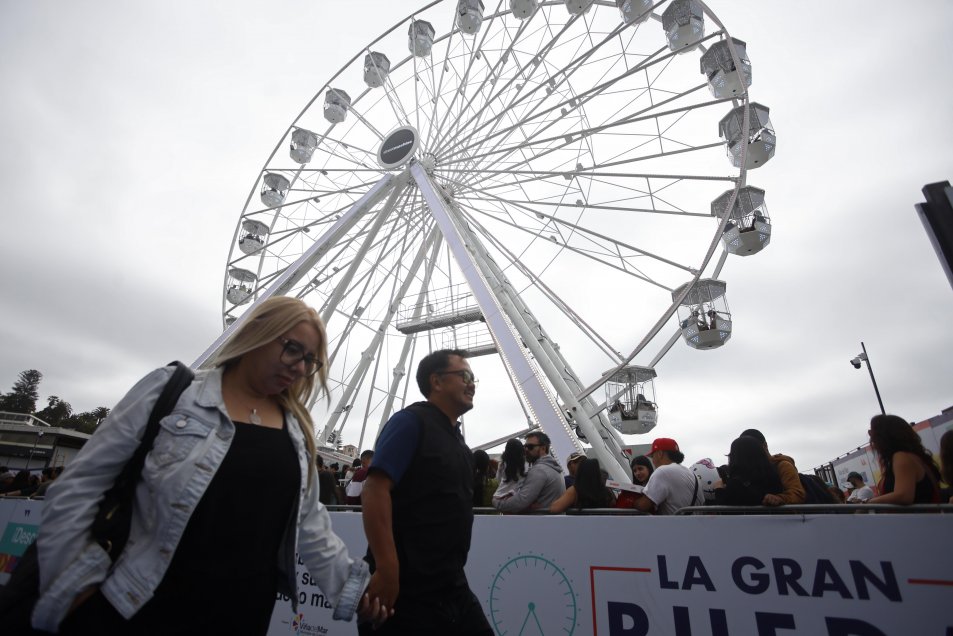 Cientos de personas disfrutaron este sábado de la apertura al público de la Gran Rueda de Chile, ubicada en la esquina de Avenida Perú con Los Héroes, en Viña del Mar, Región de Valparaíso.