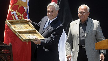 En la ceremonia, el presidente del Club Palestino le entregó un regalo de artesanía al Presidente, en nombre de la comunidad, para agradecer al pueblo chileno por el recibimiento de los inmigrantes y como regalo por el Bicentenario.