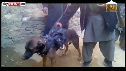 Una brigada talibana afirma haber capturado un perro del ejército de Estados Unidos tras enfrentamientos en el este de Afganistán en diciembre. Los rebeldes difundieron un video mostrando al animal atado.