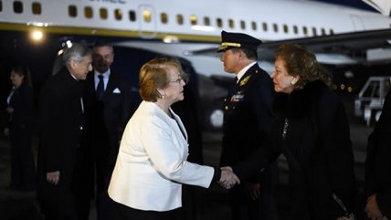 La Presidenta Michelle Bachelet llegó la noche de este miércoles a Perú para participar en el cambio de mando de esa nación que se realizará este jueves.
