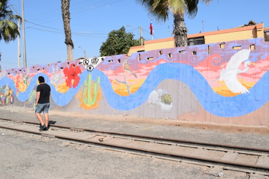 "Muralotee" llaman al mural ubicado en la avenida Luis Beretta Porcel, en la costanera de la Playa Chinchorro. El gigante es parte de los 26 proyectos financiados en la región de Arica y Parinacota por el Fondart 2018, fondo que apoya proyectos de patrimonio cultural, pueblos originarios, afrodescendientes, difusión, creación artística, cultura regional, cultura tradicional y popular entre otras temáticas.