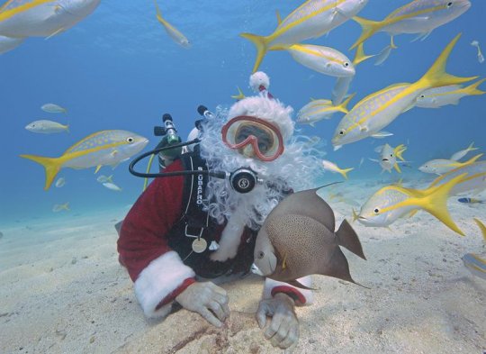 Spencer Slate, vestido como Viejo Pascuero, en el Florida Keys National Marine Sanctuary en Key Largo, Florida, EE.UU. Ha recolectado fondos durante años para los niños desamparados.