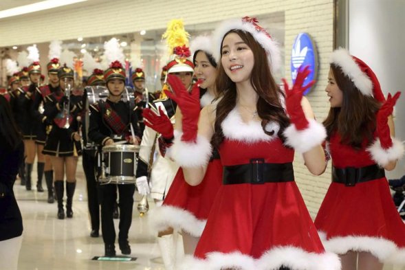 Tópicos: Sociedad | Celebraciones | Navidad Así se vive la Navidad alrededor del mundo Publicado: Martes, 24 de Diciembre de 2013 9 de 18 Modelos vestidas de Viejo Pascuero actúan junto a una banda de música en Times Square en Yeongdeungpo al oeste de Seúl, en Corea del Sur. Modelos vestidas de Viejo Pascuero actúan junto a una banda de música en Times Square en Yeongdeungpo al oeste de Seúl, en Corea del Sur.EFE
