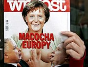 Sectores germanos criticaron el mal gusto de una revista polaca que publicó una caricatura de la canciller, en la que amamanta a las máximas autoridades de Varsovia.