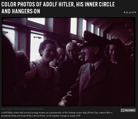 La revista Life publicó una colección de imágenes a color de Adolf Hitler, las cuales fueron tomadas por su fotógrafo personal Hugo Jaeger entre 1936 y 1945. Las imágenes las mantuvo oculta hasta que decidió venderlas a la revista.