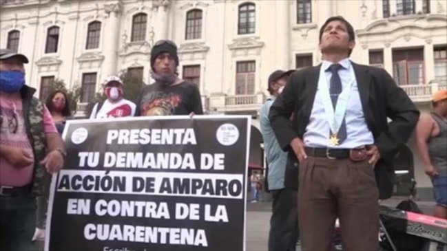 "Muera la cuarentena", "Libertad, insurgencia,Sin trabajo no hay salud" y "No al nuevo orden mundial", fueron algunos de los lemas coreados y mostrados en pancartas y banderolas por un variopinto grupo de personas que se manifestó este sábado en el centro histórico de Lima.