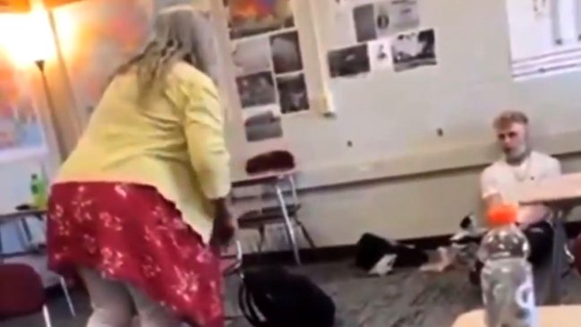 Una profesora se hizo viral en redes sociales luego de ser grabada insultando a un estudiante que no usaba mascarilla dentro de la sala de clases.
