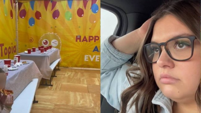A través de un video de TikTok, la mujer muestra el lugar que había habilitado para la celebración completamente vacío, mientras la cumpleañera se sienta a comer un pedazo de pizza en una de las mesas para los niños.