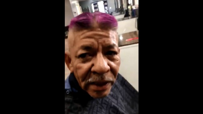 Una cosmetóloga de origen latino de Kansas, EE.UU. volvió viral la reacción de su papá cuando lo engañó y tiñó su cabello color morado.