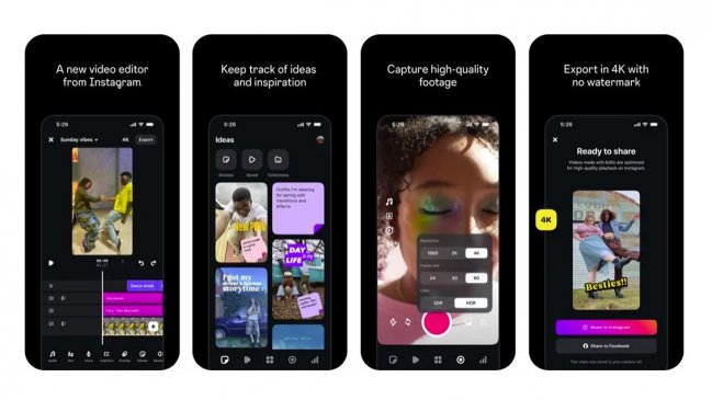 Edits, que permite loguearse con el usuario de Instagram, está disponible para sistemas Android y iOS.