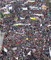 En Valparaíso, se hicieron presentes 30 mil personas en la Plaza O'Higgins, a un costado del Congreso, liderados por universitarios y representantes de la CUT y la Anef. Lo mismo ocurrió en Concepción, donde se manifestaron 10 mil personas.