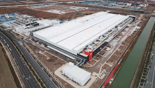 Vista aérea de la megafábrica de almacenamiento de energía de Tesla en Shanghai. (Xinhua)