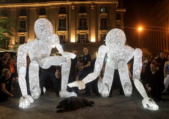 En pleno centro de la capital, el espectacular pasacalle alemán "Dundú - Luz de vida", una marioneta gigante e iluminada, acompañada de el nuevo Dundu y el Dundu Chiquito—, asombró a quienes la noche de este sábado visitaban la Plaza de Armas de Santiago en uno de los últimos grandes espectáculos de Santiago a Mil.