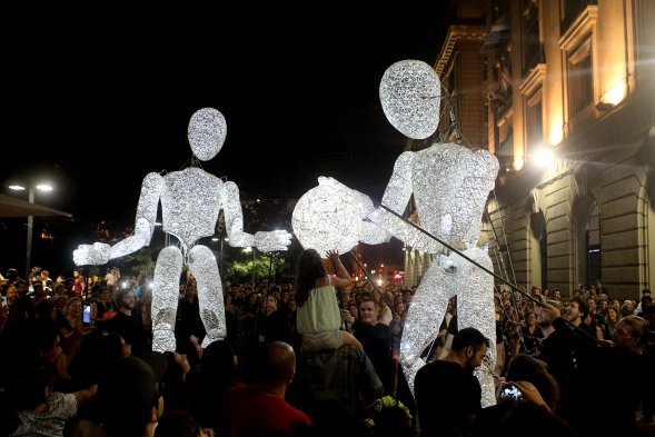 En pleno centro de la capital, el espectacular pasacalle alemán "Dundú - Luz de vida", una marioneta gigante e iluminada, acompañada de el nuevo Dundu y el Dundu Chiquito—, asombró a quienes la noche de este sábado visitaban la Plaza de Armas de Santiago en uno de los últimos grandes espectáculos de Santiago a Mil.