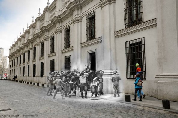 Con fotos originales de Gustavo Alberto Bravo, Horacio Villalobos, Köen Wessing, Chas Gerretsen, David Burnett y Manuel Mejido, el artista nacional Andrés Cruzat dio vida al fotomontaje "La Persistencia de la Memoria". Revisa acá su trabajo, a 41 años del golpe de estado.