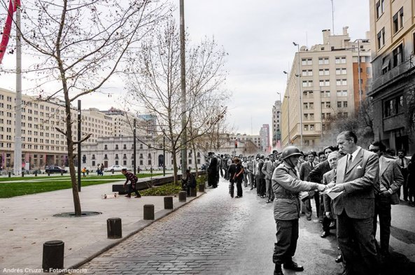 Con fotos originales de Gustavo Alberto Bravo, Horacio Villalobos, Köen Wessing, Chas Gerretsen, David Burnett y Manuel Mejido, el artista nacional Andrés Cruzat dio vida al fotomontaje "La Persistencia de la Memoria". Revisa acá su trabajo, a 41 años del golpe de estado.