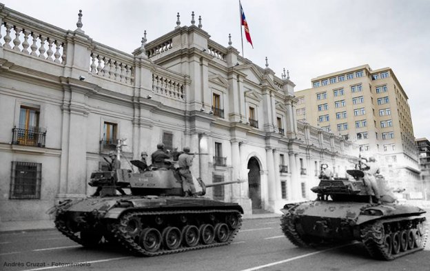 Con fotos originales de Gustavo Alberto Bravo, Horacio Villalobos, Köen Wessing, Chas Gerretsen, David Burnett y Manuel Mejido, el artista nacional Andrés Cruzat dio vida al fotomontaje "La Persistencia de la Memoria". Revisa acá su trabajo, a 41 años del golpe de estado.