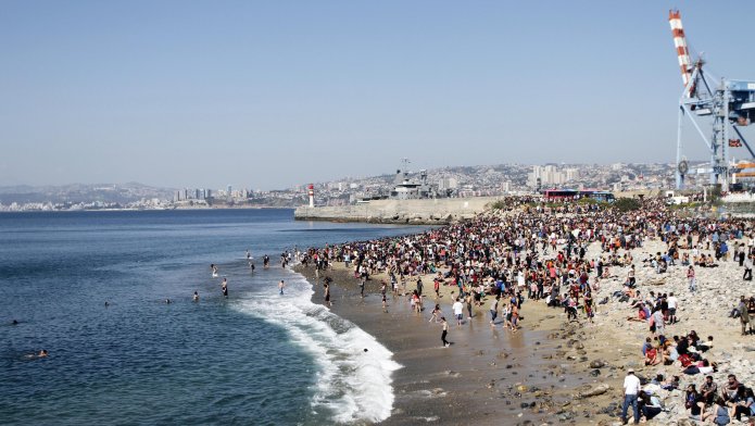 Miles de personas participan en el tradicional desfile de bailes, danzas y cuerpos pintados, que pone fin a los dos días del carnaval "Mil Tambores" en Valparaíso.