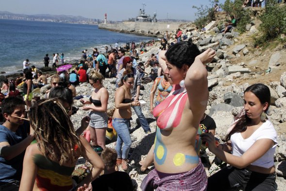 Desfiles, bailes y cuerpos pintados cierran el carnaval "Mil Tambores" en Valparaíso