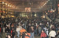 La fiesta -transmitida on line por Cooperativa.cl- se inició a las 21:45 horas del viernes los primeros "guachacas" movieron mesas y sillas para alcanzar una buena ubicación frente al abastecimiento de pipeño, terremoto y otros brebajes. "En Mejillones yo tuve un amor", sonaba por los parlantes, y los más prendidos se animaban con unos pasos.