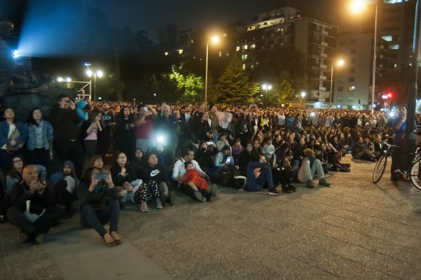 Este miércoles se inauguró Küzefest, festival de luz de Santiago, con el Mapping Challenge Latinoamérica, donde juegos de luces, imágenes multicolores y audio se fundieron en una propuesta artística audiovisual que iluminó el renovado frontis del Museo Nacional de Bellas Artes.