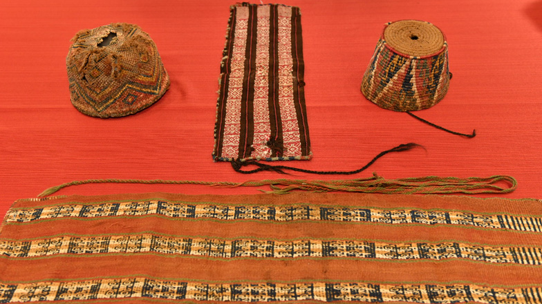Se trata de un gorro troncocónico tejido en técnica de aduja, que es muy frecuente en los cementerios arqueológicos de la costa de Arica y Tarapacá del denominado período prehispánico Tardío de influencia Inca (entre 1.350 a 1.540 años d.C.); dos bolsas fajas cuya morfología, tecnología e iconografía son muy frecuentes en los textiles de cementerios arqueológicos de la costa y valles de Arica y Camarones, procedente de los períodos prehispánicos Intermedio Tardío y Tardío (entre 1.100 a 1.540 d.C.); y un gorro textil, tejido con técnica anudada, similar a los gorros de cuatro puntas, que podría proceder del Oasis de Pica o Tarapacá, correspondiente a los períodos prehispánicos Medio e Intermedio Tardío (entre 900 a 1.540 d.C.).