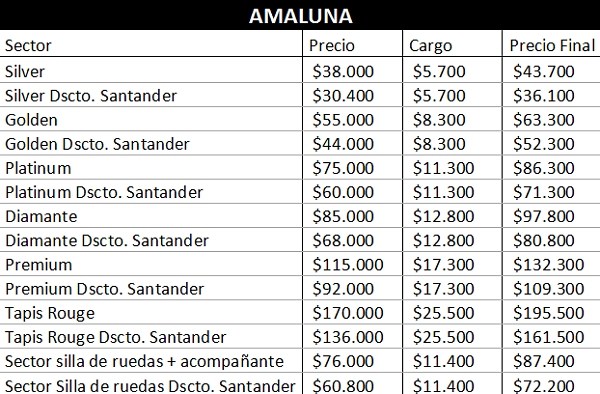 Las entradas están a la venta a través de Punto Ticket y los valores son los siguientes:
