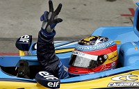 El corredor de Renault lideró el recorrido sobre el Circuito Enzo y Dino Ferrari de Imola desde el octavo giro, merced al abandono por problemas mecánicos del finlandés Kimi Raikkonen (McLaren Mercedes), ganador de la pole position.