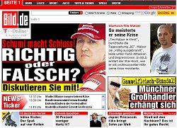 Bajo el título "Schumi acaba (su carrera)", el rotativo de mayor tirada de Europa asegura que Schumacher, de 37 años, comunicará públicamente en Monza, este domingo, su decisión de finalizar su carrera profesional tras participar posteriormente en las pruebas de Shanghai, Suzuka y Sao Paulo.