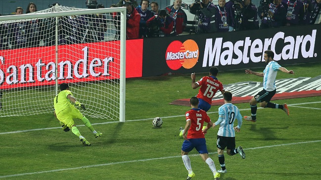 Definición a penales: Para Chile marcaron Matías Fernández, Arturo Vidal, Charles Aránguiz y Alexis Sánchez. En Argentina Lionel Messi anotó su disparo, Gonzalo Higuaín desperdició y el remate de Ever Banega fue tapado por Claudio Bravo.