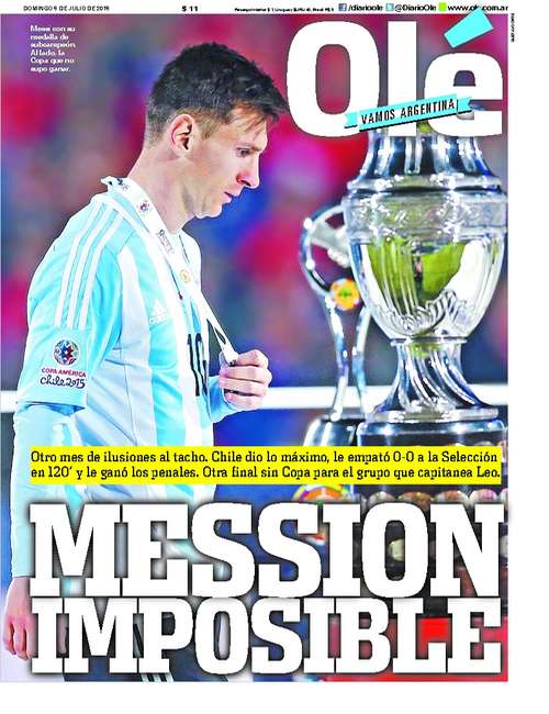 20150705093904 | [Foto] La portada de Olé tras la caída de #ARG ante #CHI en la final de #Chile2015
