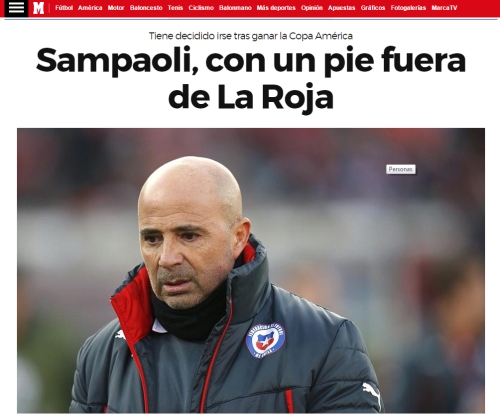 20150705130209 | El diario Marca aseguró este domingo que Sampaoli tiene "un pie fuera" de la selección chilena