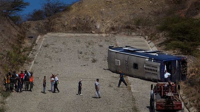 El accidente vial se produjo el miércoles cuando el autobús se quedó sin frenos y volcó en el camino hacia el Aeropuerto Internacional de Maiquetía de la capital venezolana.