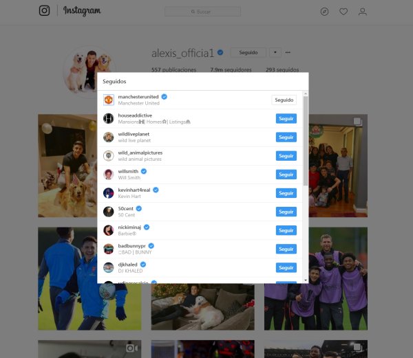 Revisa a continuación la imagen de que Alexis Sánchez sigue a la cuenta de Manchester United en Instagram.