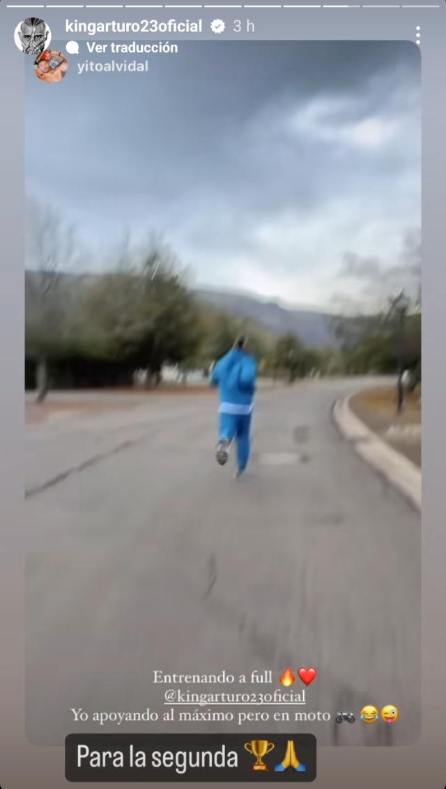 Luego, por medio de su Instagram, el jugador compartió videos con un duro entrenamiento aeróbico, al correr a un potente ritmo. A su lado, en una moto, lo acompañó su primo Yito Vidal.