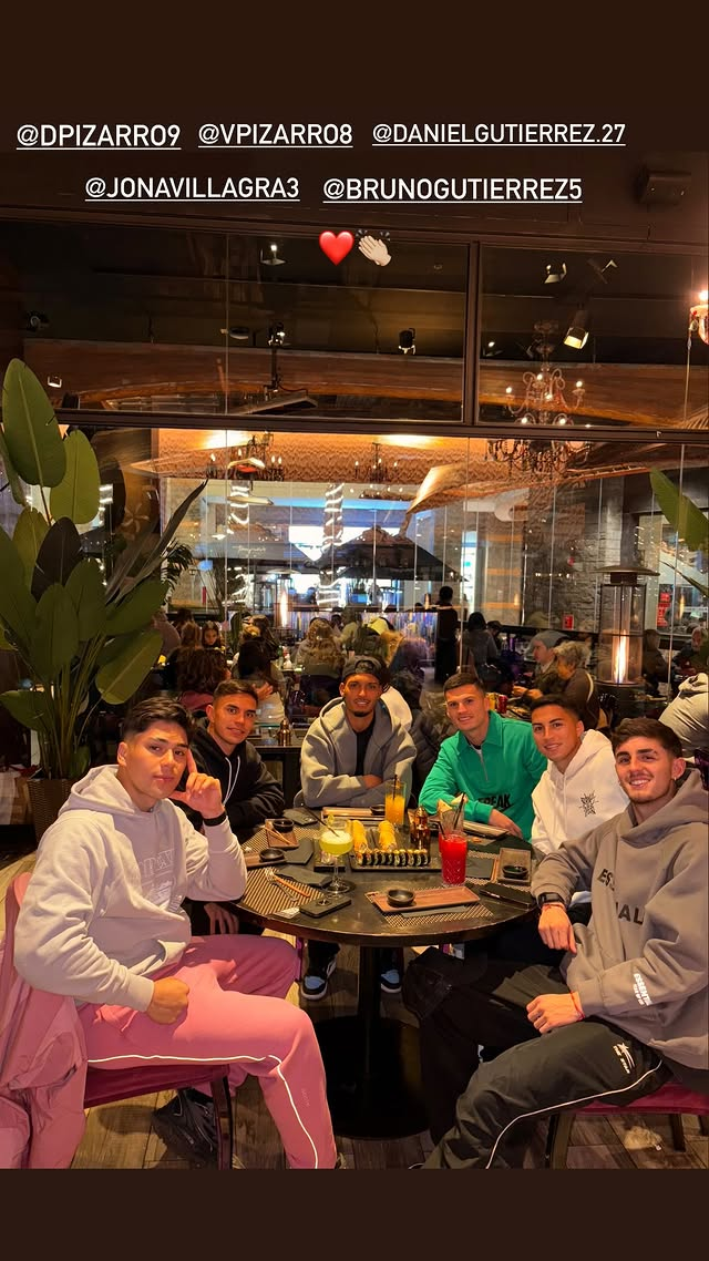 En sus actividades, el atacante de 20 años apareció en una imagen publicada por Lucas Cepeda en Instagram, donde también se le ve compartiendo una cena junto a otros integrantes del plantel como Vicente Pizarro, Daniel Gutiérrez, Jonathan Villagra y Bruno Gutiérrez.