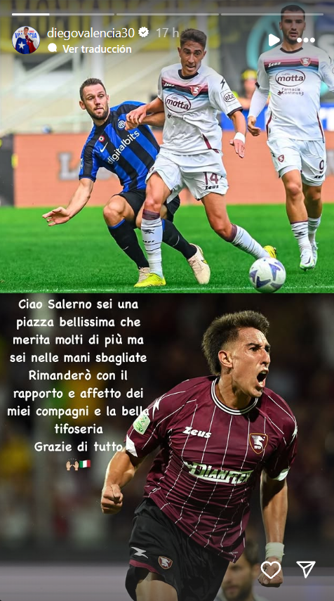 "Adiós, Salerno. Eres un lugar precioso que se merece mucho más, pero estás en las manos equivocadas", escribió el futbolista.
